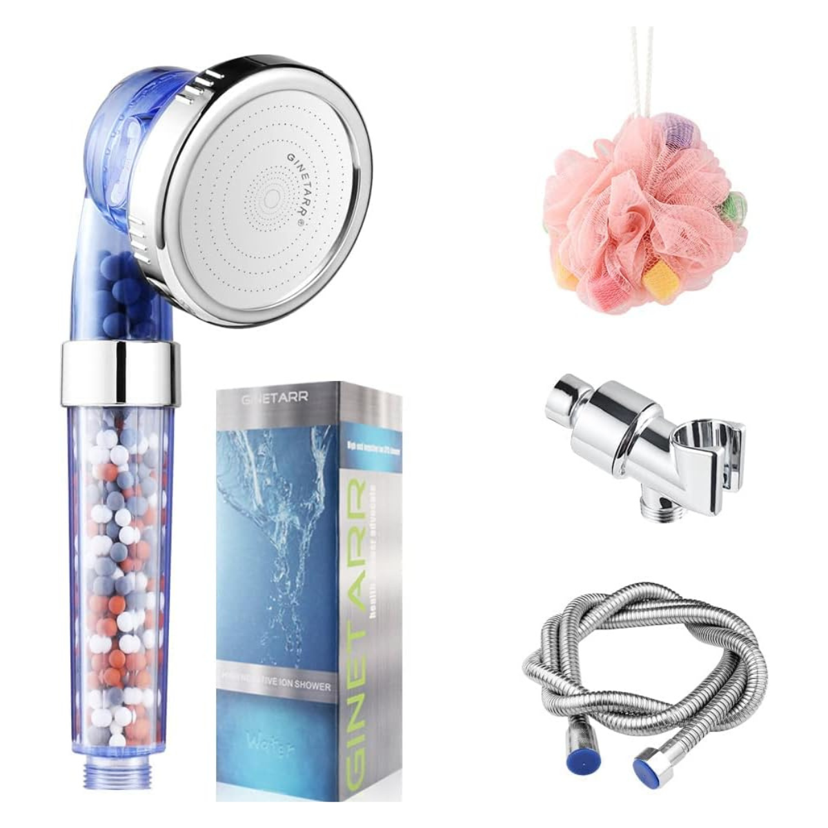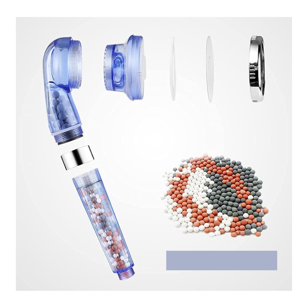 - Materiales de Calidad: Fabricado en ABS resistente, con esferas nanocerámicas que eliminan el cloro y antioxidantes beneficiosos para la piel.