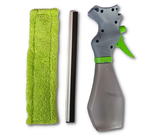 - Herramienta de Limpieza 3 en 1: Incluye botella rociadora, escobilla de goma y cabezal de limpieza de microfibra.